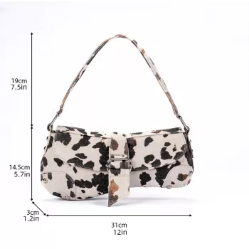 Cow Print Canvas Shoulder Bag – Vintage Animal Print Underarm Tote